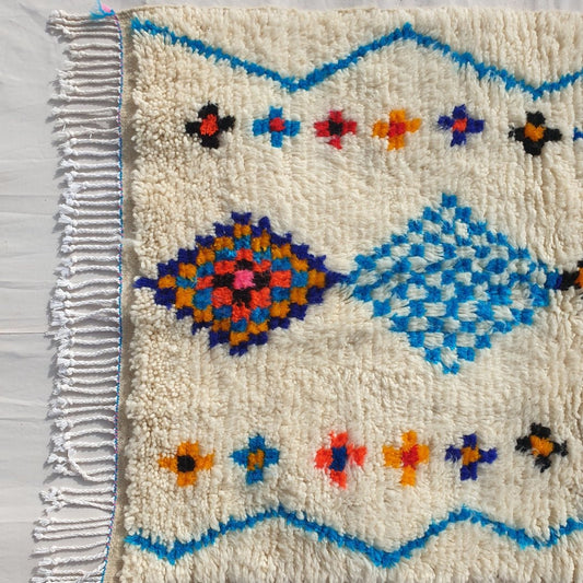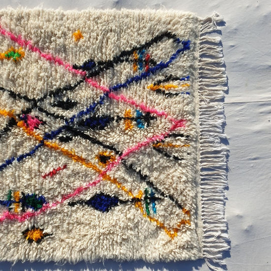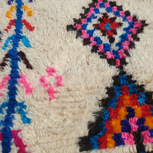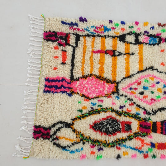 Jrabaa - petit tapis marocain blanc azilal | Authentique tapis de chambre marocaine artisanale à la main | 2'66x4'50 ft | 81x137 cm