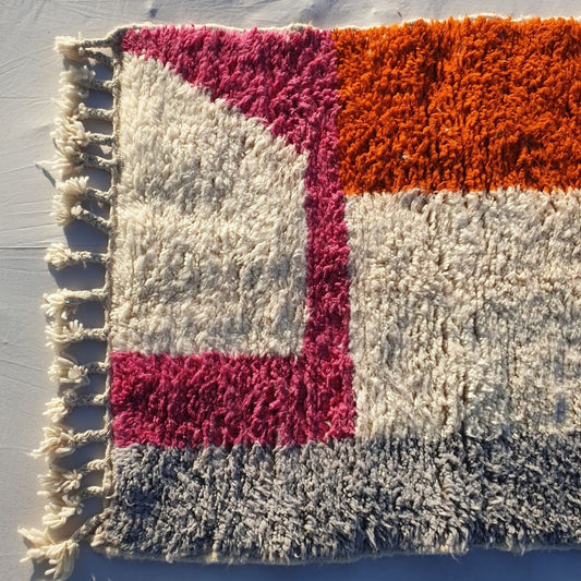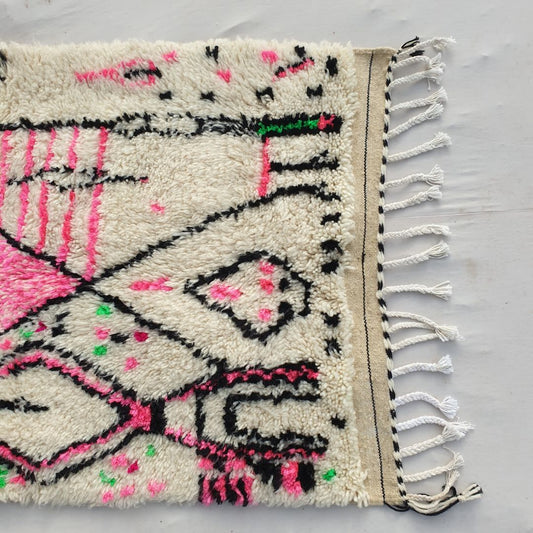 Tiwla | Rapis marocain blanc et rose 3x5 Beni Ourain Ultra Soft | 3'74x5'51 ft | 114x168 cm