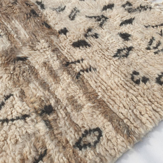 Nama | 3x5 Beni Ourain Rug - Soft Beige Moroccan Shag Rug with Black Geometric Symbols | 3'8"x5'3" Ft | 112x160 cm